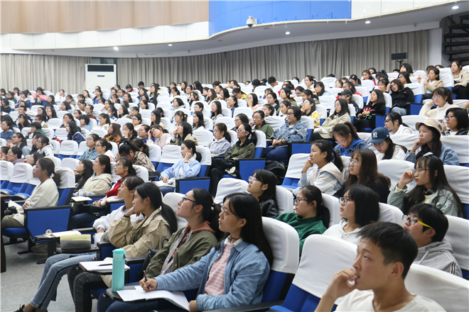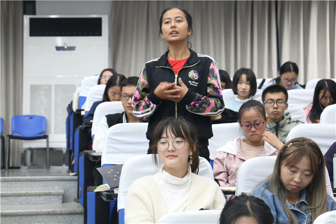 “我的普通话不是很标准,如果有听不懂的地方,请提出来我再说一遍。”讲座伊始,古丽尼沙·卡斯木简单说明了自己的新疆人身份,因此普通话说得并不标准。这使得在座学子深表敬佩,讲座现场掌声阵阵。随后,她从大学生活、学习经历、师生交流等诸多方面进行叙述,讲述了一个新疆女孩身处他乡求学的励志故事。关于大学生活,她切实强调参与活动的重要性,躬行实践方可提升自我。“当遇到难以解决的问题时,我们要学会分析问题,找出问题的本质所在,以脚踏实地的精神做好每一件事。”就学习经历而言,古丽尼沙·卡斯木表示,适合的学习方法尤为重要,同时,自主学习能力必不可少。她告诫在座学子要端正学习态度、明确学习目标、科学规划时间,以实际行动无愧大学四年。当谈及师生情、同窗情时,古丽尼沙·卡斯木更是十分激动。“我很感谢所有老师和同学们对我的帮助,如果没有他们的关怀,我很难学好专业课和普通话。” 古丽尼沙·卡斯木立足基础、着眼实际,将经验与思考相结合,以细腻的话语、真挚的建议为同学们在前进生涯中点亮一道明光。