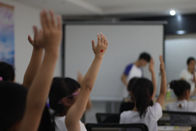 当志愿者陈述完规则,说想要参加辩论的小朋友举手时,他们一个一个迅速举高了小手,卯足了劲往高举,生怕被前面的同学挡住老师看不到似的,甚至有人一只手撑着课桌,屁股离开椅子往上撅,就为了另一只手让高高举起。