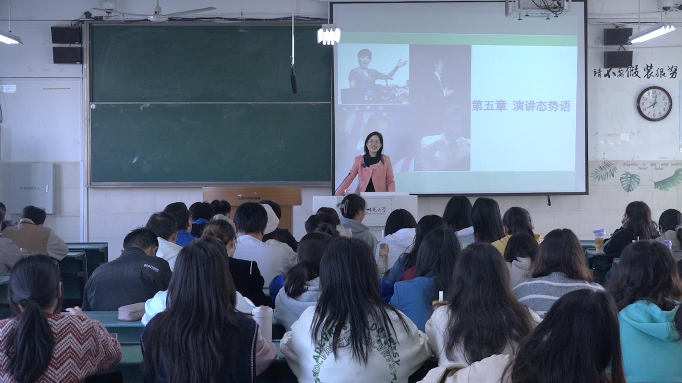 1110日上午,必赢线路检测3003no1李小荣老师在2050403教室为同学们讲授了一堂生动精彩的演讲表情语公开课。