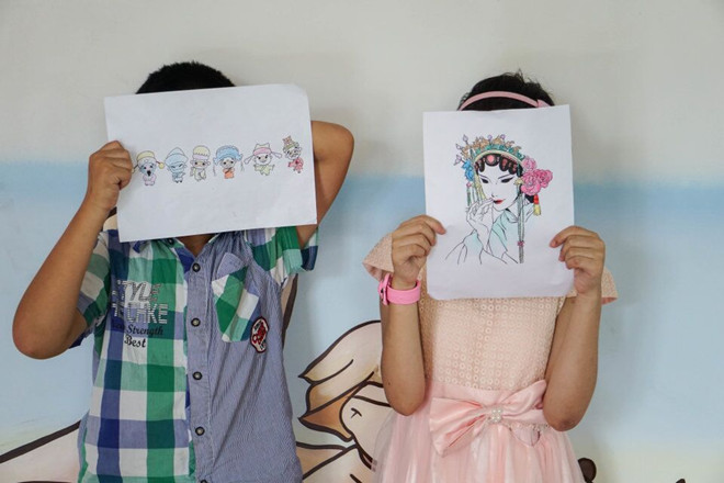数十张戏服剪影经过精心挑选送到了孩子们的手中,“给我一根蓝色的铅笔!”“我要黑色的!”“姐姐把红色的铅笔给我一下好吗?”剪裁精致的戏服在舞台上华光流转,被画在纸上也不失其传统本色,孩子们和志愿者齐心协力,完成了一幅又一幅的戏服填色,成果出来时,志愿者们被吓了一大跳,上了颜色的戏服的确非常漂亮,就像是画家的手稿一样,独具设计感。