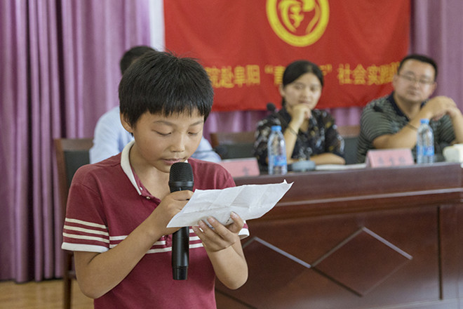 “心中有阳光,脚下有力量。为了理想坚持不懈怠,创造无愧于时代的人生”这是团颍州区委副书记朱囡囡借习近平总书记的话对志愿者们提出的诚挚寄语。百善孝为先,“青春孝行,扶智助贫”这一实践主题十分契合目前受到国家、政府以及社会各方面重视的养老问题。她对学生、志愿者以及团委提出了三点希望:希望三合的孩子积极参与活动中去,开拓眼界,提高自我,做一名孝心少年,传递社会正能量。志愿者通过这次实践可以有所思,有所学,不断服务社会,实现自身价值。对于团委工作,她表示要团委积极做好服务工作,及时与志愿者沟通问题,为实践活动提供支持。