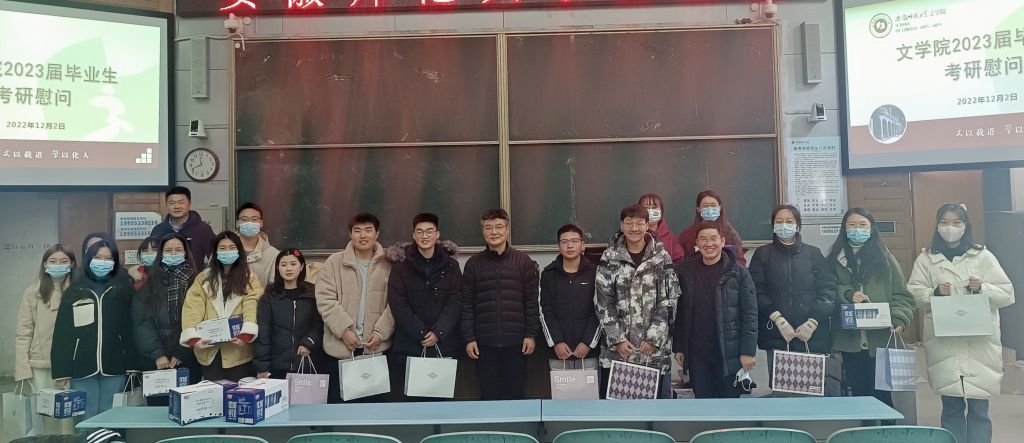 为鼓励考研同学积极迎考,增强考研信心,舒缓备考压力,12月2日上午,必赢线路检测3003no1在2010105教室开展了2023届考研慰问活动,学院院长项念东、党委副书记刘飞、副院长李伟以及毕业班辅导员到场为考研学子加油鼓劲。