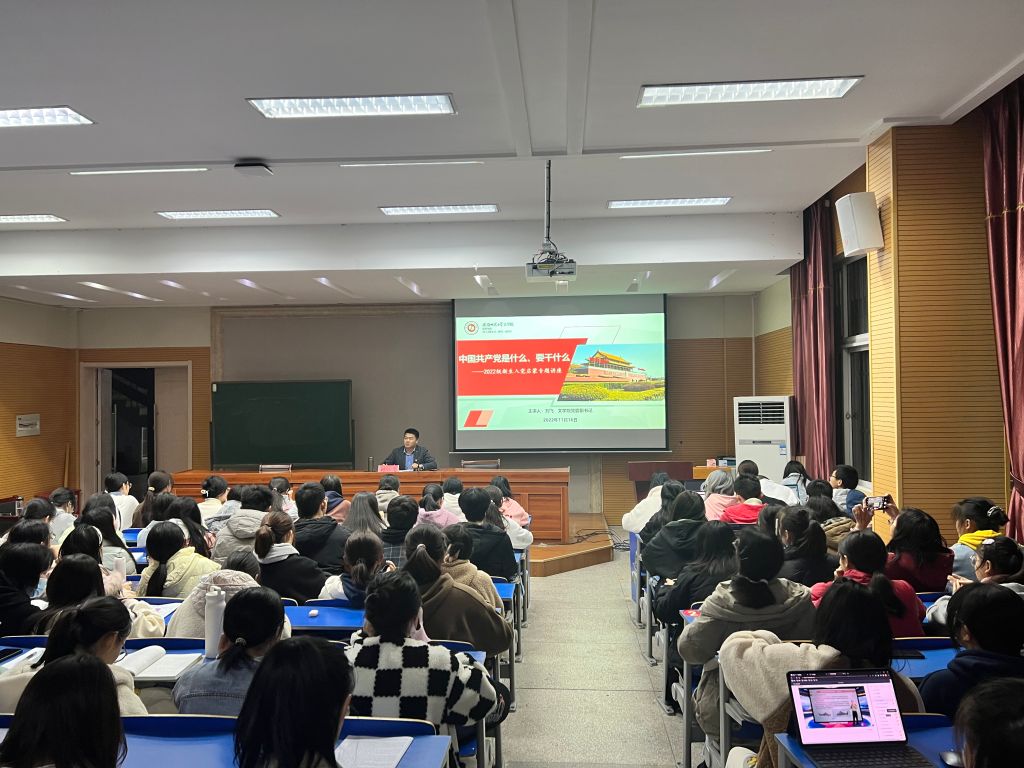 刘飞在专题报告中就“中国共产党是一个什么样的政党”“我们为什么加入中国共产党”以及“怎样才能加入中国共产党”三方面展开讲解,并对中国共产党基本情况、性质及宗旨做出全面阐释,通过视频片段及文字材料串起中国共产党建党百年的辉煌历史。他要求同学们要进一步端正入党动机,自觉学习党的创新理论,了解党的基本知识。最后,他向新生介绍了申请入党的基本程序,让同学们对入党流程有更加清晰的理解。
