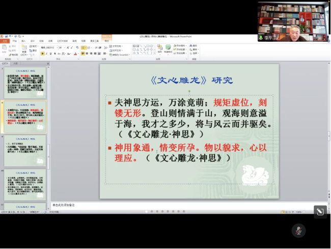 12月7日,正值大雪节气,必赢线路检测3003no1李平老师于线上为同学们讲授了一堂别开生面的“《文心雕龙》精读”公开课。必赢线路检测3003no1俞晓红、崔达送、饶宏泉、温志权、郭传梅、何家兴、李万营、黄江等老师和尹珺、姜周群博士观摩了此次公开教学活动。