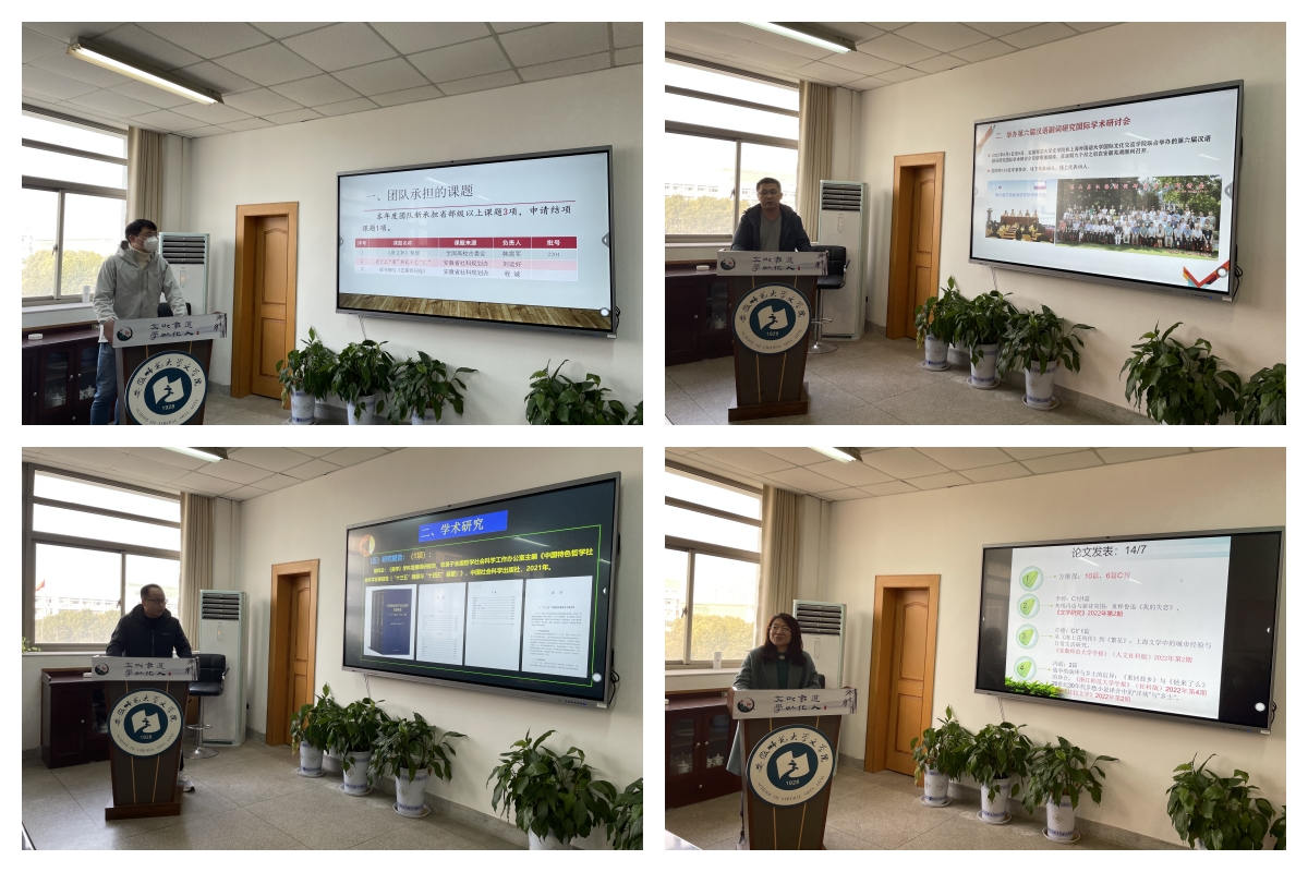 汇报后,团队、中心负责人进行交流,针对团队建设积极建言献策。储泰松教授提出,团队建设要充分结合学科评估、人才培养,要精准定位、分类建设,兼顾人才培养、科研研究、社会服务等不同职能的发挥,团队要相互借鉴、相互学习、相互融合。王昊教授提出,团队分工还需要进一步明确,要注重凝练团队方向,对于比较成熟的学者和年轻教师,可以结合个人特点、兴趣点进行分类。胡传志教授提出,各团队要进一步强化带头人的功能和奉献意识,研究方向要进一步集中,要有更明确的量化管理办法。此外,侯宏堂、潘务正、张勇、王茂跃、饶宏泉等老师也先后就团队建设与发展提出了诸多建议。