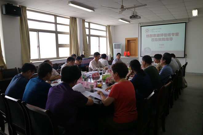 会议由储泰松主持,他首先介绍了评估专家组成员及与会人员,并向评估专家组的到来表示热烈的欢迎。彭凤莲副校长随后致辞,向评估专家组介绍了学校近年来的发展概况,她指出学校高度重视学科建设与学位评估工作,希望评审专家组能够对学科发展把脉问诊,促进中国语言文学一级学科更好更全面的发展。接着,储泰松从培养目标与标准、基本条件、人才培养、优势与不足四个方面进行了学位点自我评估汇报,并详细介绍了中国语言文学学位点的建设情况。评估组专家在对材料进行仔细审核之后,进行询问交流,并与学生代表开展座谈。