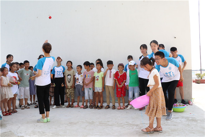 “我们和孩子们只有短短半天的相处时间,彼此之间不太熟悉,所以我们需要一场‘破冰’活动让他们记住我们、了解我们,最好是喜欢上我们。”实践队员李丽提出她的想法。方案已定,队员们用心思考活动形式,精心准备活动道具,悉心选择活动奖品,团队成员积极参与,彼此了解,增进感情。