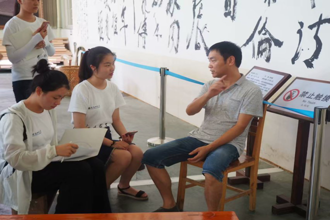 “我们从没做过这么大的宣纸,遇到了很多困难,因为太大很难晒得平整,也是凭着自己多年的经验,然后慢慢的摸索出来一套方法。”当被问及制作三丈宣的困难时,毛师傅爽朗的笑着对队员说。