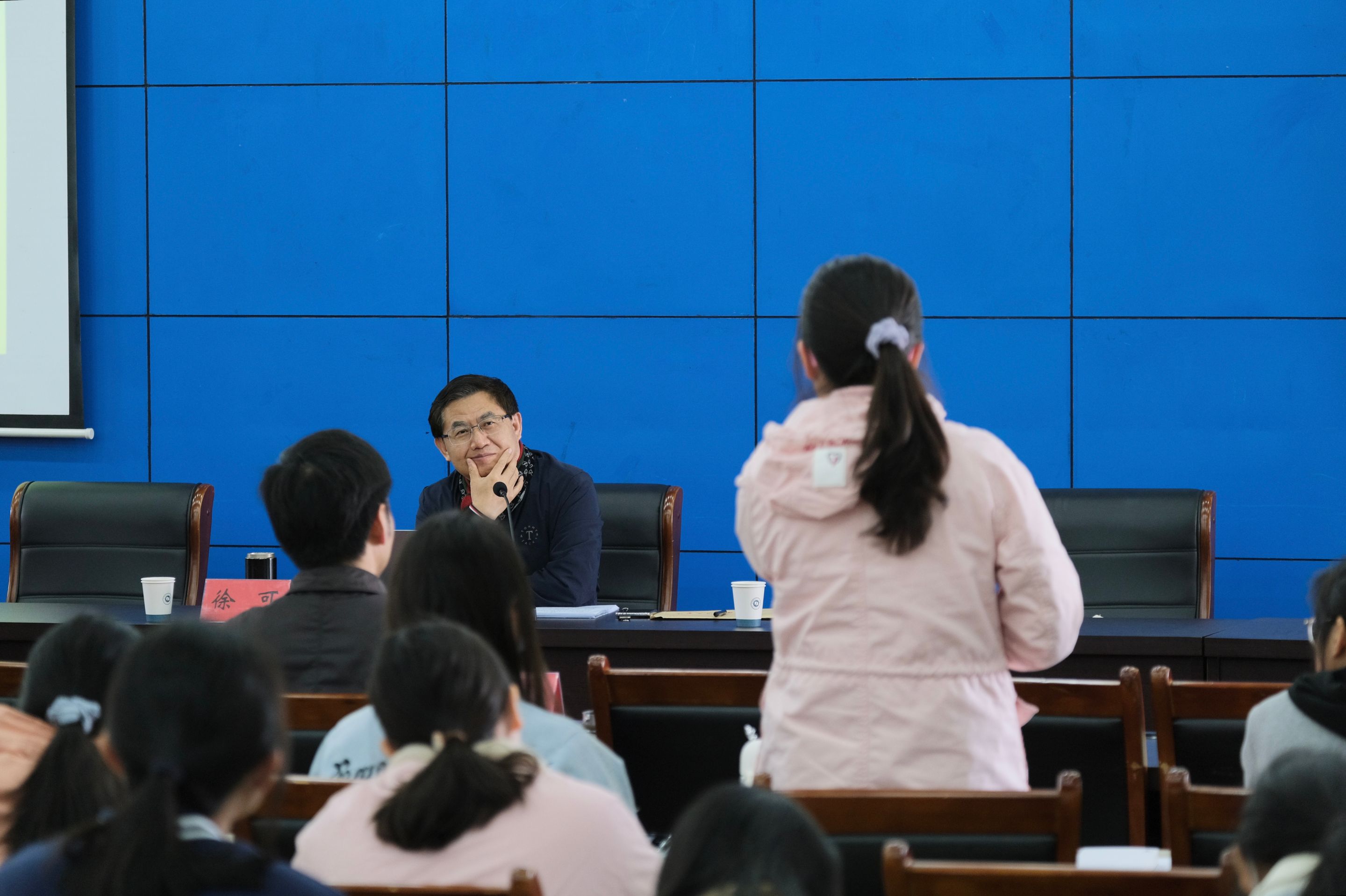 徐可老师的开场白平易亲切,迅速将同学们带入品味中华散文古典美的氛围之中。随后,徐可从五个方面开始讲座。第一部分“问题的提出”中,他指出中国散文创作表面繁荣的背后隐藏着令人担忧的危机,呼吁大家静下心来回望传统、学习传统。第二部分“中华散文的源流与嬗变”,他以曹丕的《典论·论文》为引,讲述了中华散文的源头、产生和发展,旁征博引,论证有力。第三部分“中华散文的古典美”中,他表示,当今散文应具有思想底气、学养底蕴与人格力量,强调“散文须有学”“散文须有理”“散文须有情”。第四部分“中华古典散文的四大传统”,他重点讲解了散文的叙事传统与抒情性,使同学们对散文的理解更加深刻。最后一部分“关于散文的继承与创新”,他以汪曾祺与董桥两位著名作家为例,表明振兴散文的科学之道是在继承传统的基础上,借鉴、吸收一切新思想、新方法。讲座后,徐可还与同学们充分互动,就同学们提出的相关问题进行释疑答惑。