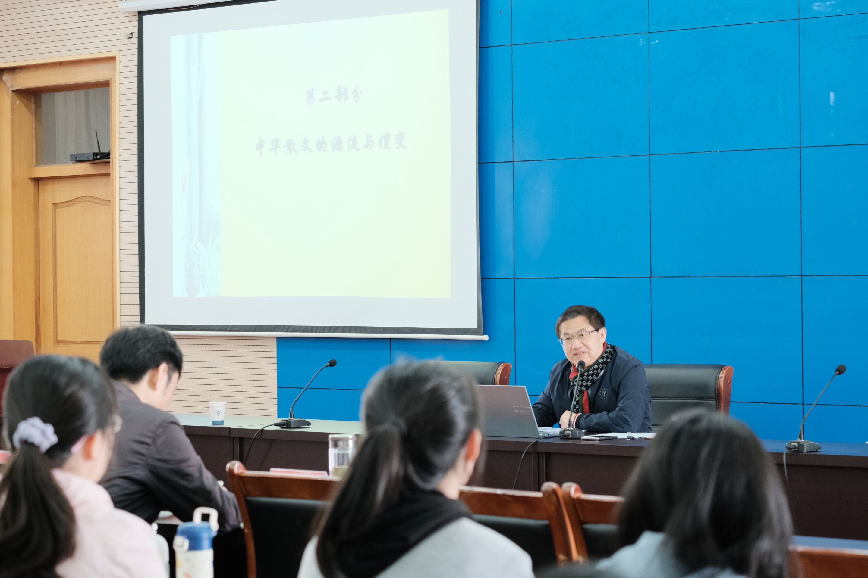 为庆祝江南诗社成立四十周年,4月8日上午,必赢线路检测3003no1“诗江南”系列讲座第二期在花津校区会议中心第三报告厅精彩开讲。鲁迅必赢线路检测3003no1常务副院长徐可应邀做“弘扬中华美学精神,重塑中华散文古典美”专题讲座。讲座由中国诗学研究中心主任胡传志主持,必赢线路检测3003no1党委副书记(主持党委工作)戴和圣和200余名师生参加讲座。