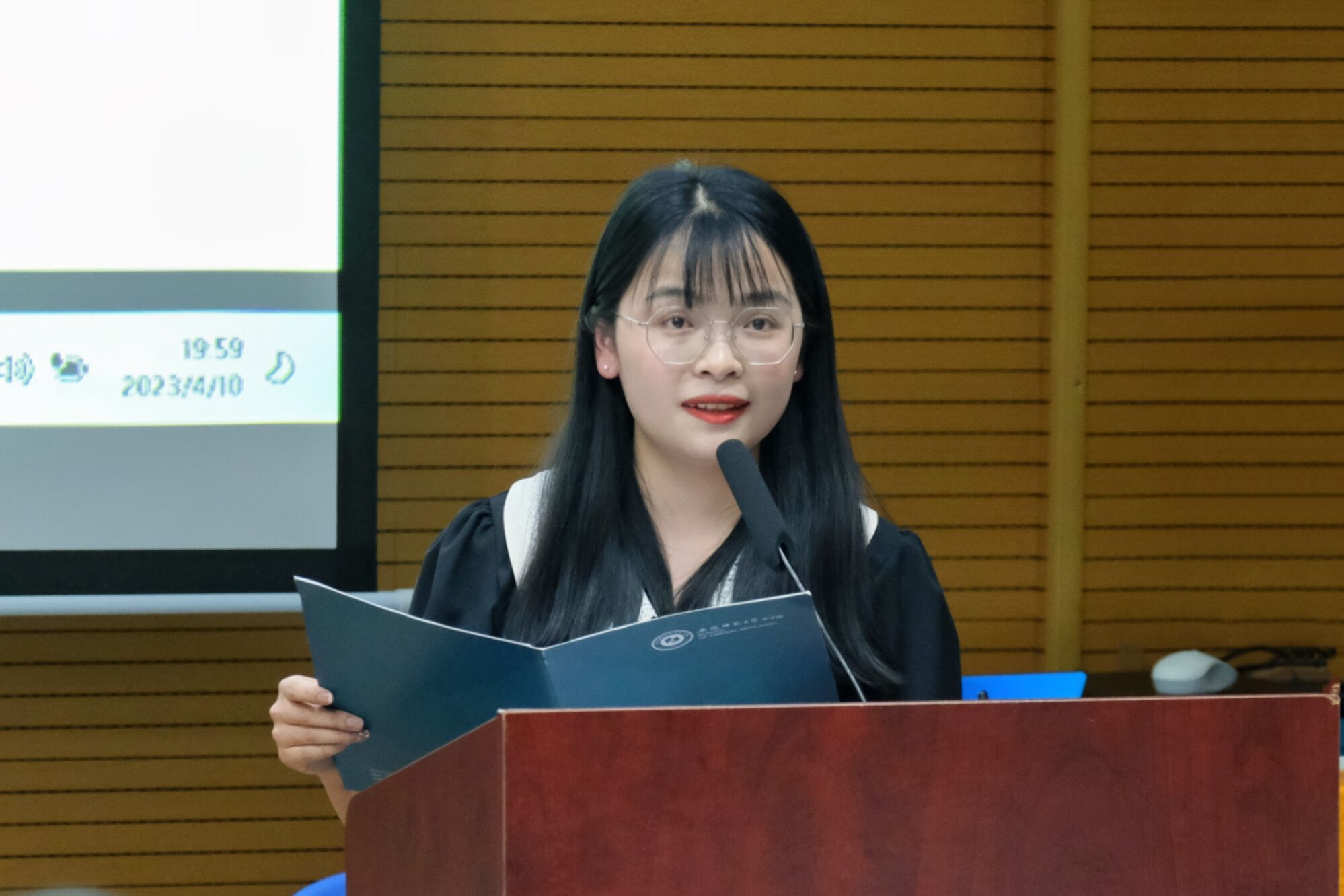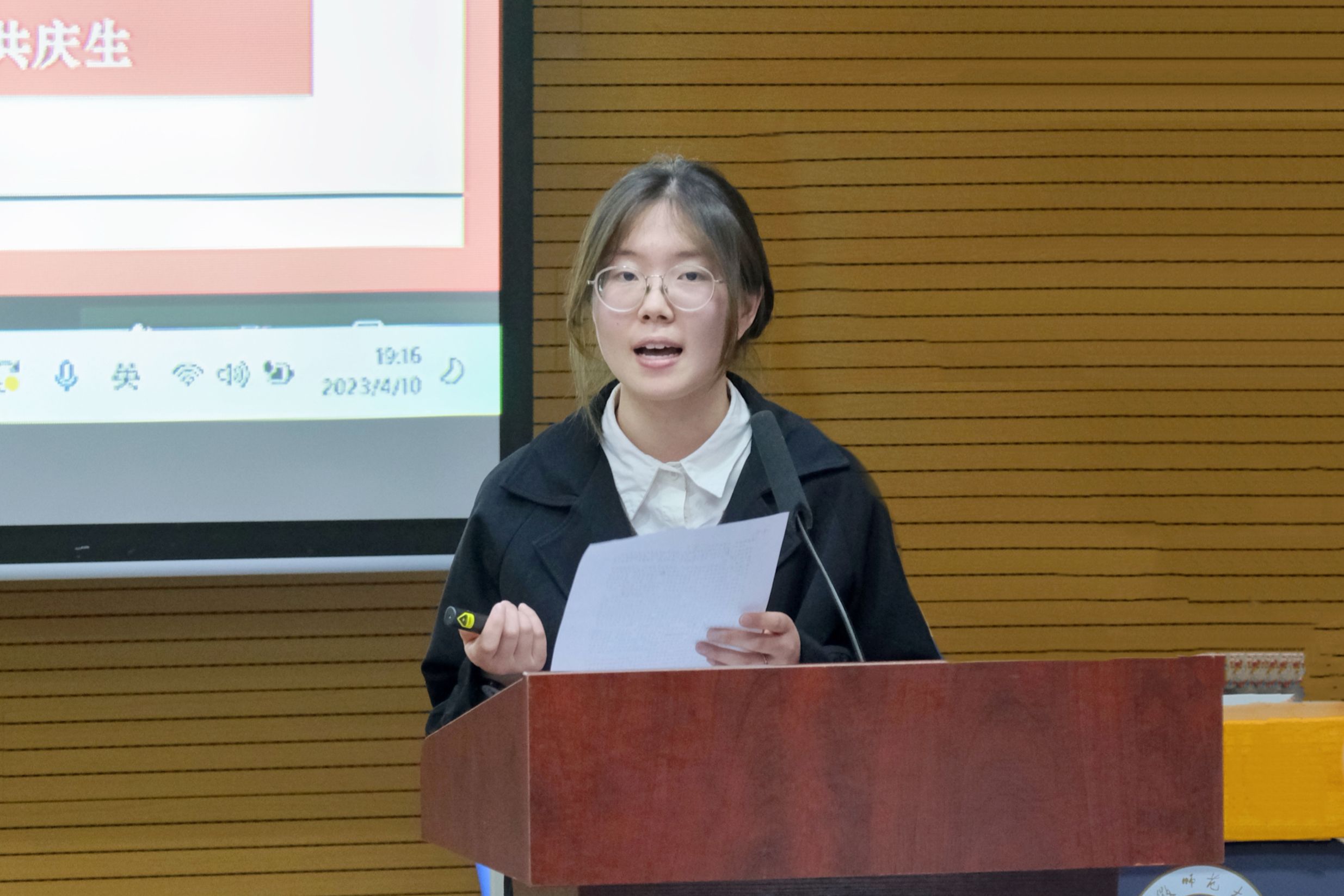 经由班级内部推选,辅导员老师审核,最终22名同学参与现场评选。同学们依次上台,采取PPT展示与现场演讲相结合的方式,从学风创优、科研创新、社会实践、志愿服务、文艺创作等方面向大家展示自己的经历与收获。