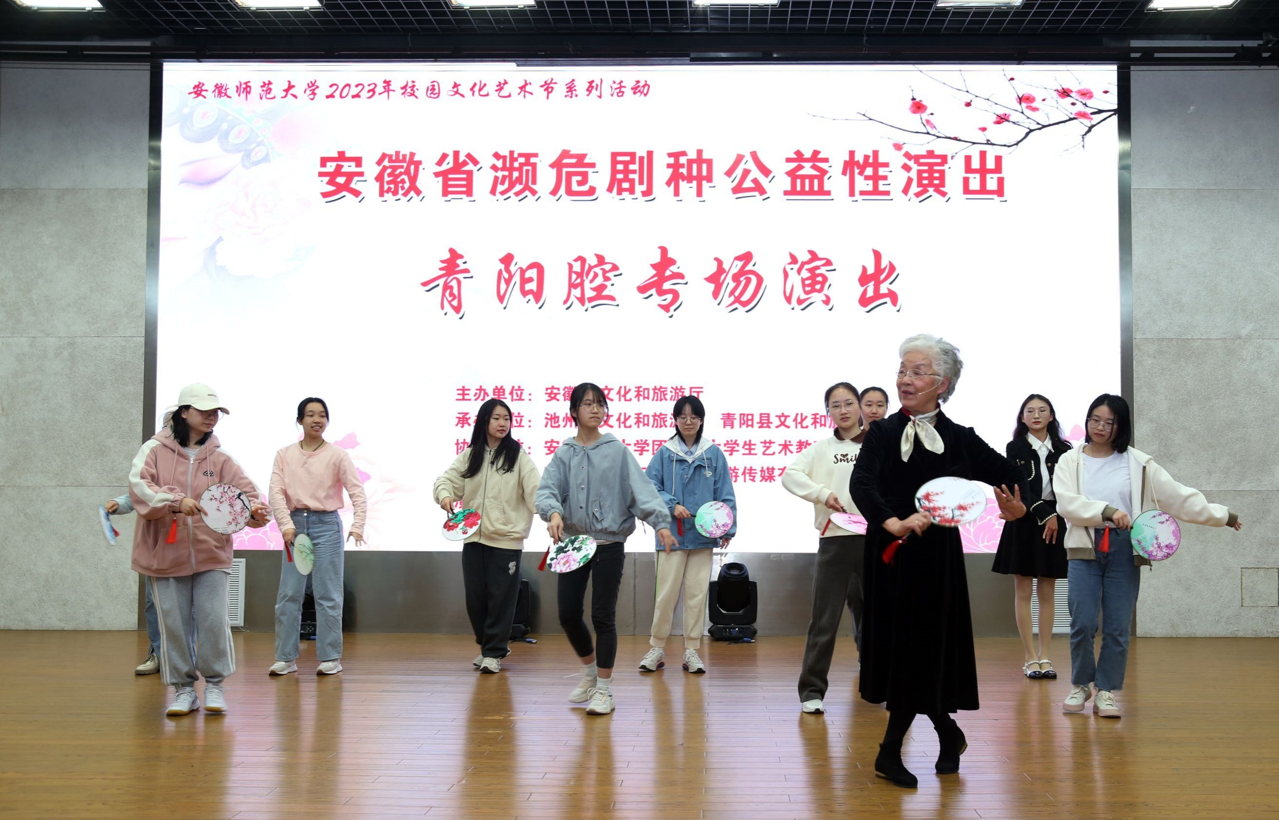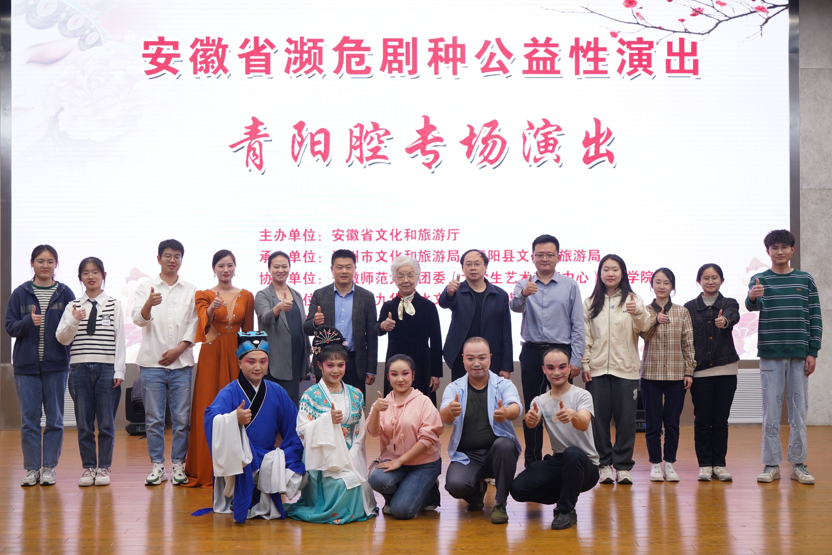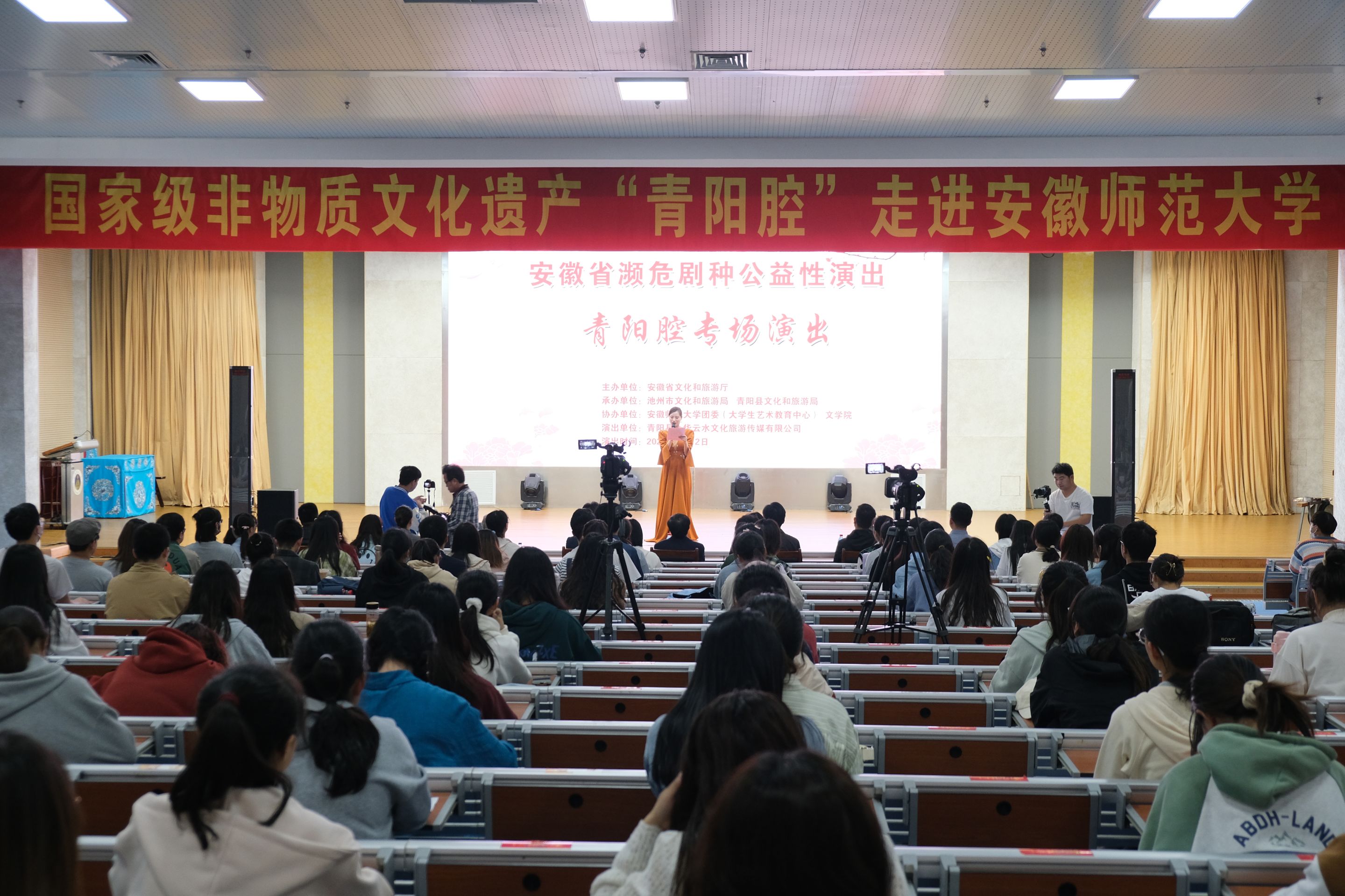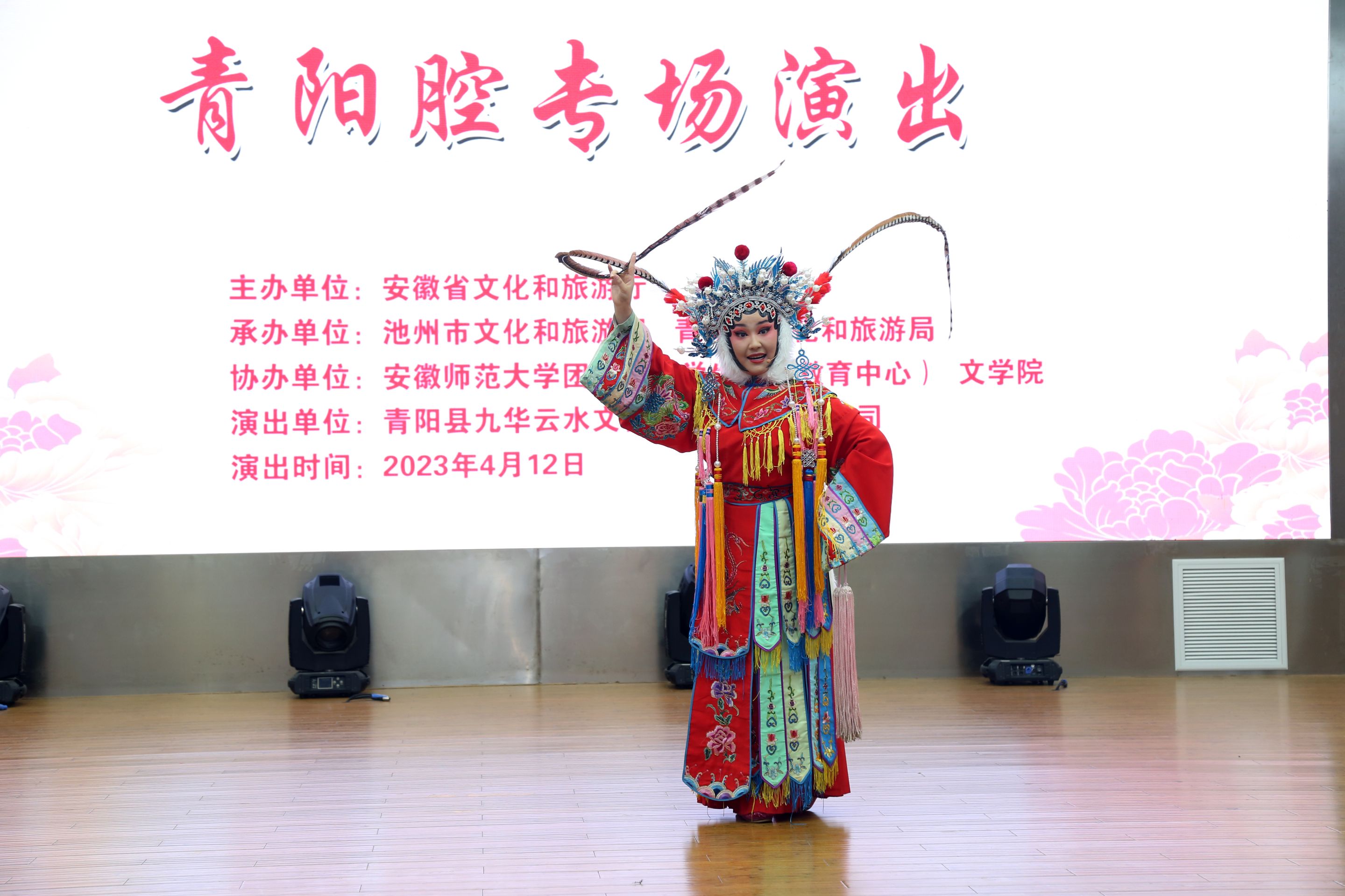 戏曲进校园,文化润心田。在建校95周年之际,为进一步丰富校园文化生活,4月12日下午,安徽省濒危剧种“青阳腔”专场演出在花津校区理科大楼报告厅精彩上演。青阳县文化和旅游局、青阳县九华云水文化旅游传媒有限公司等相关单位负责同志,以及我校团委副书记陈骁,必赢线路检测3003no1领导班子和全校300余名师生代表共同欣赏了这场精彩绝伦的非遗文化盛宴。