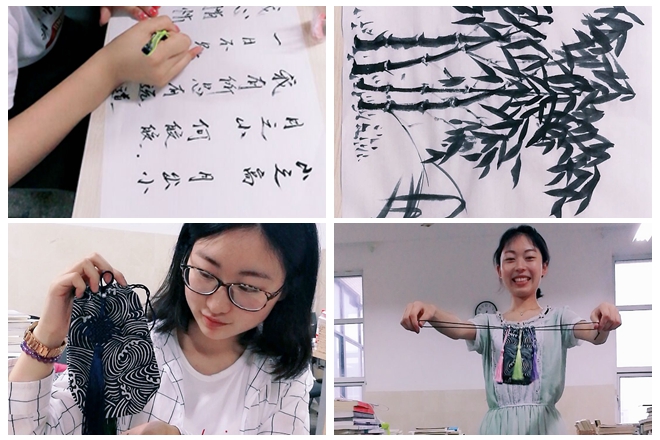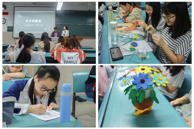 拿起画笔,拾起童心。手绘T恤活动中,在一件件白色T恤上,16级汉语言文学非师范专业的同学们尽情创作着。小时候幻想驾驶的宇宙飞船、最喜欢的卡通人物、一直想养的一只小猫……画笔仿佛变成了一座桥,连接起过去、今天与未来。同学们在轻松愉快的活动中,释放压力、寻回快乐。16级卓越语文教师实验班开展“贤豪青云客,与君心莫逆”手工体验活动,同学们在一针一线中沉淀心境、远离烦扰,用一个个亲手制作的锦囊凝聚美好情思。17级汉语言文学非师范专业开展寝室手工布艺花制作大赛。制作过程中,寝室成员一起解决困难,也一起分享成功的喜悦,一朵朵精致的布艺花更成为对友情的褒奖。