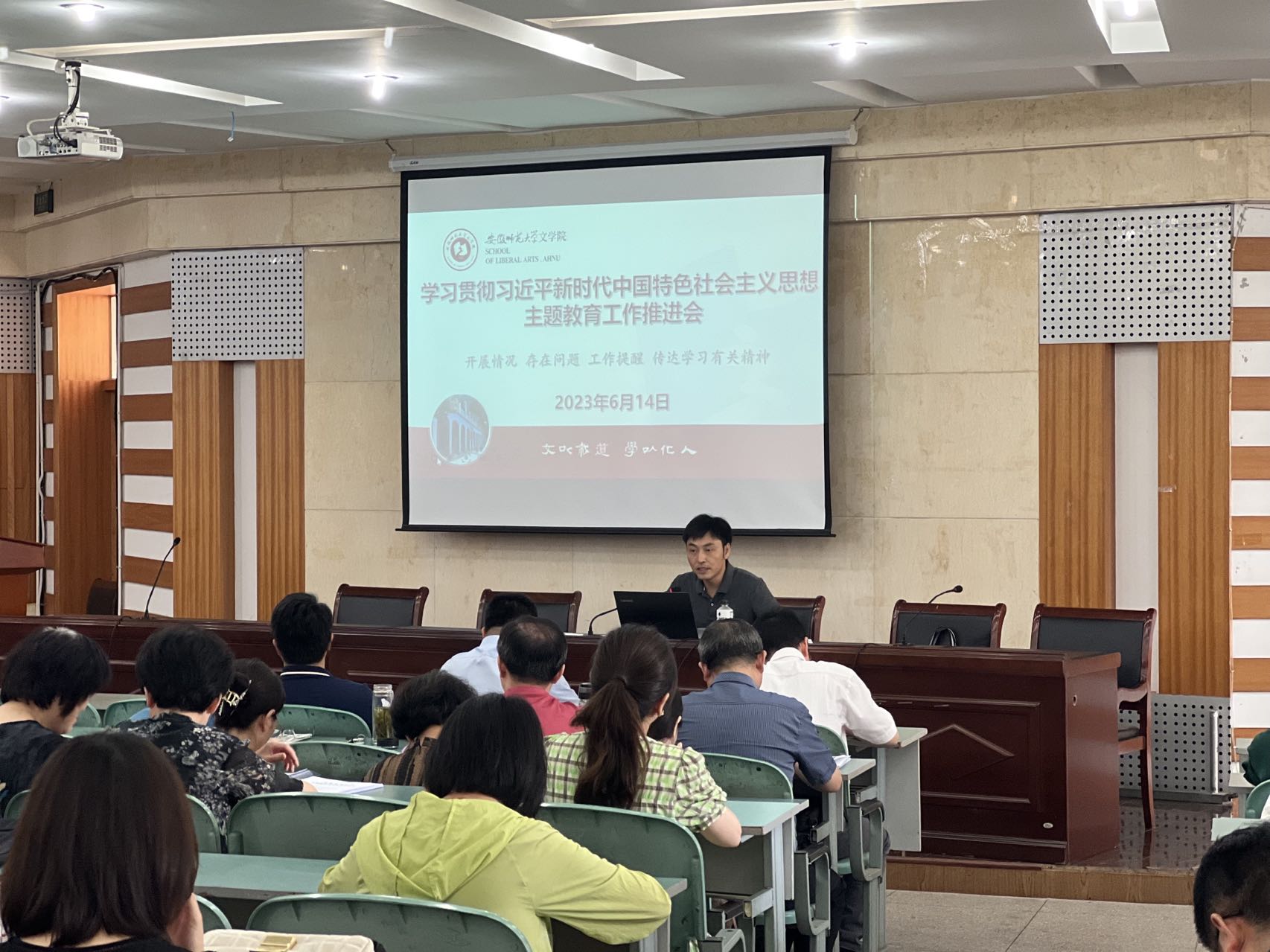 会议要求,这次主题教育是一件事关全局的大事,时间紧、任务重、要求高。各党支部要高度重视,精心组织实施,层层压实责任。一是要持续强化理论武装。要及时跟进学习习近平总书记重要讲话指示批示精神,坚持读原著、学原文、悟原理,将理论学习贯穿主题教育始终,进一步增强“四个意识”、坚定“四个自信”、做到“两个维护”。二是要在为师生办实事解难事上取得实效。要持续深化“为师生办实事”活动,丰富为师生办实事项目清单,把解决师生关切的要事、难事和学院建设发展作为主攻方向,紧紧盯住“双困生”就业帮扶、天门山校区学生管理、非师范专业实习基地建设、暑期小学期的落实、教师工作室实体化建设等师生关注的工作,在不断提升服务保障质量上下功夫。三是要注重实效狠抓落实。各支部要按照印发的实施方案,制定支部计划,进一步对标对表,规范有序、按时按质开展专题研讨和“三问”交流,坚持将主题教育同推动核心工作结合起来,不断强化创新理论运用和调研成果的转化,切实以好的作风确保主题教育取得好的成效。