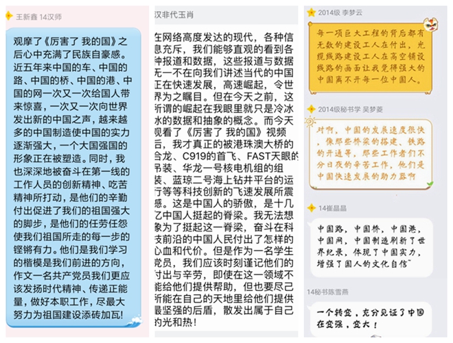 学员们各抒己见,就观影感想进行了热烈地讨论和交流。培训班第一组学员王祎这样感叹道:“习近平总书记说未来属于年轻人,作为青年人的我们也要意识到自己肩上的担子,努力让自己更加优秀,为祖国的未来贡献自己的力量。”“作为一名预备党员,我一定不忘初心,为我们中华民族的伟大复兴而坚持奋斗,继续前行!”第三小组学员张亚晴观影后说道。
