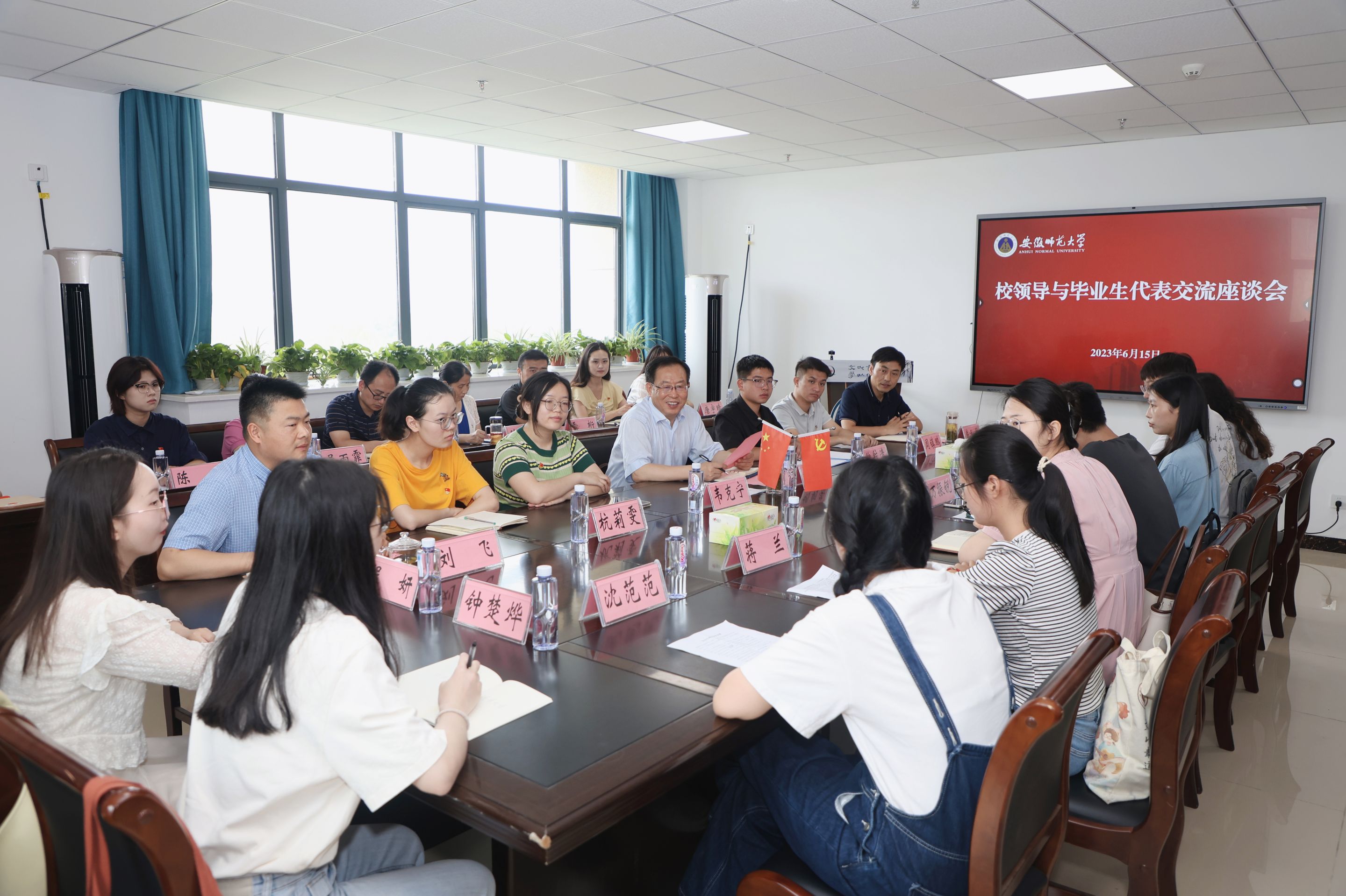 6月15日,校党委书记胡朝荣来到学院与2023届毕业生代表亲切交流,来自各专业的毕业生代表主动向胡朝荣书记汇报自己大学四年的学习经历、收获体会和毕业去向等,在毕业临别之际表达对母校的感恩与依依不舍之情。“找工作遇到哪些困难?”“考上了哪所学校的研究生?”“对未来有什么规划?”胡朝荣不时插话亲切地和同学们交谈,关心毕业生的学习生活和职业发展等情况,并勉励毕业生要坚持志存高远、矢志奋斗、团结合作、守好底线、终身学习。