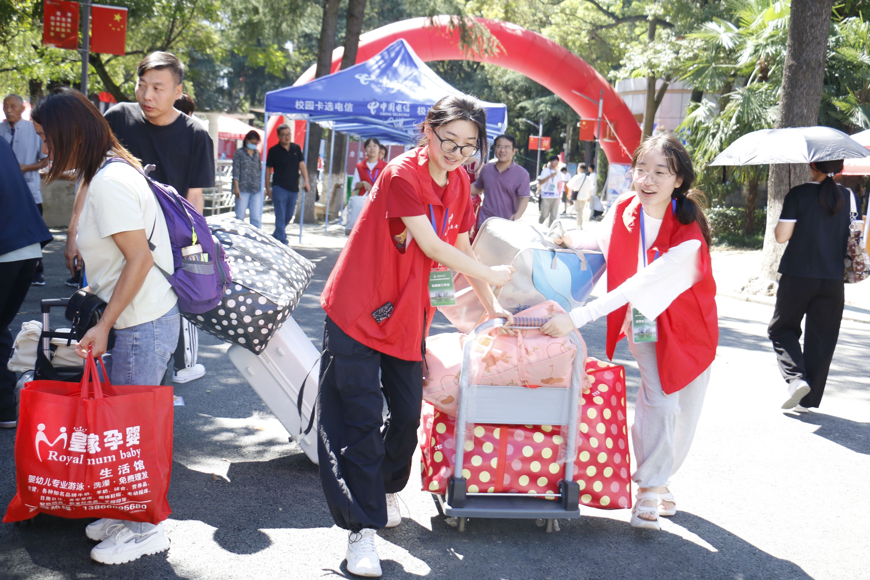 从校门口到报到处,再到宿舍内,随处可见必赢线路检测3003no1迎新志愿者们忙碌的身影。负责身份核对、信封分发的志愿者们坚持微笑服务;负责秩序引导、方向指引的志愿者坚持耐心解答;负责行李搬运的志愿者们坚持主动帮忙、从不喊苦喊累……