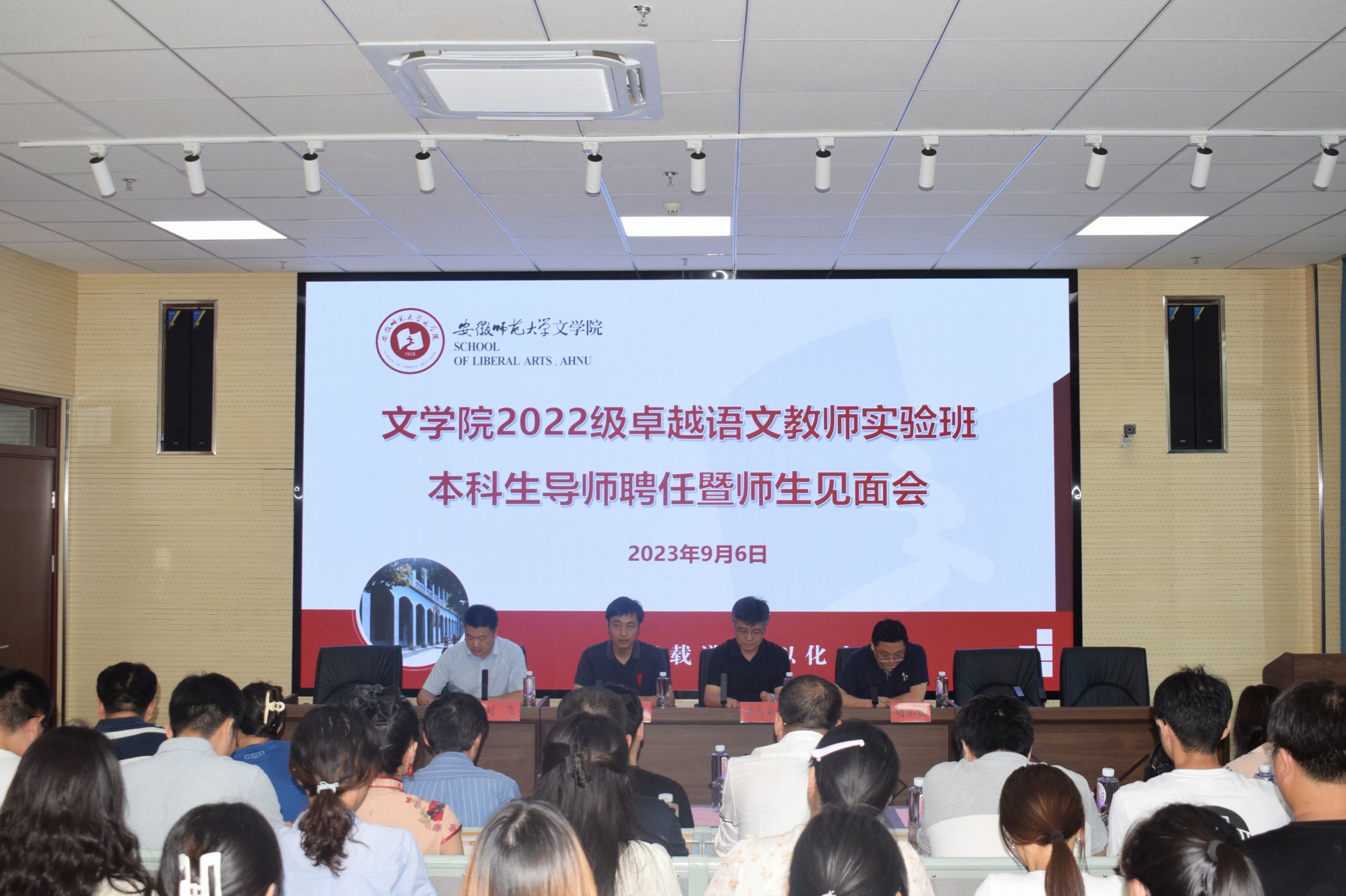 为深入推进学校两大振兴行动计划,落细落实本科生导师制,进一步提升卓越语文教师实验班的人才培养质量,着力打造必赢线路检测3003专属语文学科金牌师范生。9月6日下午,必赢线路检测3003no1召开2022级卓越语文教师实验班本科生导师聘任暨师生见面会。必赢线路检测3003no1院长项念东、党委副书记(主持党委工作)戴和圣、汉语言文学(师范)专业主任胡承佼和全体受聘的本科生导师应邀出席会议。会议由院党委副书记刘飞主持,2022级卓越语文教师实验班全体同学参与会议。