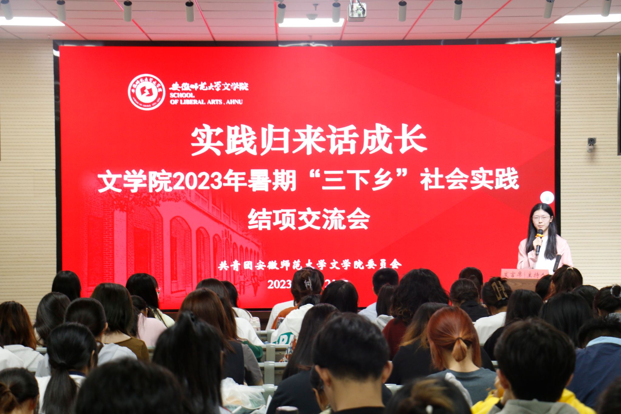 学院32支社会实践团队通过使用ppt展示和现场汇报相结合的方式对暑期社会实践活动进行总结交流,并分享了他们的实践经历、收获成果。“诗仙皖路”实践团队为探寻李白在安徽的唐诗文脉走访多地,并利用团队内部成员跨学科交叉优势,采用GIS等现代化技术再现李白在皖的诗路文脉;“清友会旅”实践团队赴金寨聚焦茶产业进行调研,并开展助农公益直播,吸引了千余人齐聚云端,取得了较好的销售成绩;五四爱心学校赴黄山“说文写字”实践团队深入祁门乡村学校,通过开展七彩课堂助力孩子们全面发展,并着力开展推普助力乡村振兴专项活动;五四爱心学校赴泾县“书香沁·支教情”实践团队围绕“经典润乡土”计划开展中华优秀传统文化传播、关爱少年儿童健康成长,实践成果得到“学习强国”等平台报道。