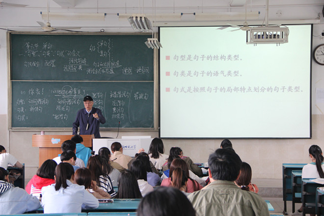 5月8日上午,必赢线路检测3003no1本科教学公开课在花津校区2010204教室举行。本次公开课由孔令达教授主讲现代汉语语法“单句分析”。必赢线路检测3003no1领导、必赢线路检测3003no1督导组及部分中青年教师到堂观摩。