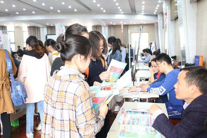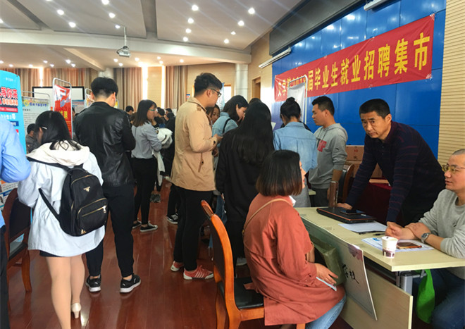 来到招聘现场的企业众多,气氛热烈,中铁十局集团、招商银行芜湖分行、合肥厚德中学等65家用人单位受邀参加此次招聘集市,职位涉及教育、管理、商务等各个方面,吸引了众多优秀毕业生前来投递简历。毕业生们都做了充分准备,携带着个人简历,注重着装和礼仪,主动了解各用人单位招聘信息,并向相关负责人咨询。同学们都排着队有序的投递简历,并抓住机会进行自我推荐。在现场的领导老师也积极与用人单位进行沟通交流,并指导毕业生选择合适的工作。