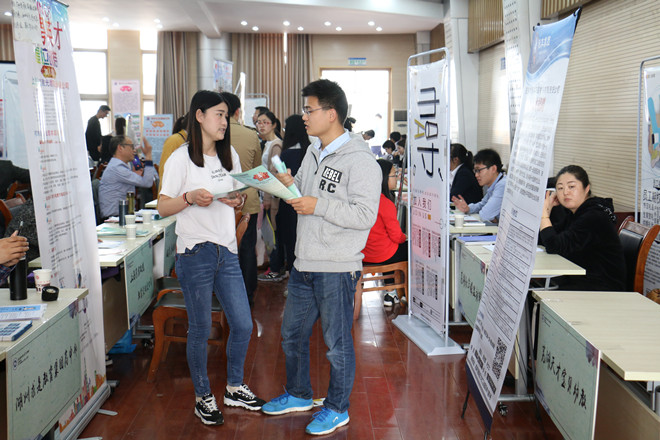面对现场丰富的岗位选择,不少毕业生都有了较为明确的就业目标。来自2014级汉语言文学(非师范)专业的小陈为了圆自己的“师范梦”,早在大三就考取了教师资格证。而面对现场多家知名教育机构,小陈却笑称自己早已“挑花了眼”。党支部的志愿者大致了解她的需求后,从厚厚的宣传单中挑选出数家单位,向她仔细介绍。