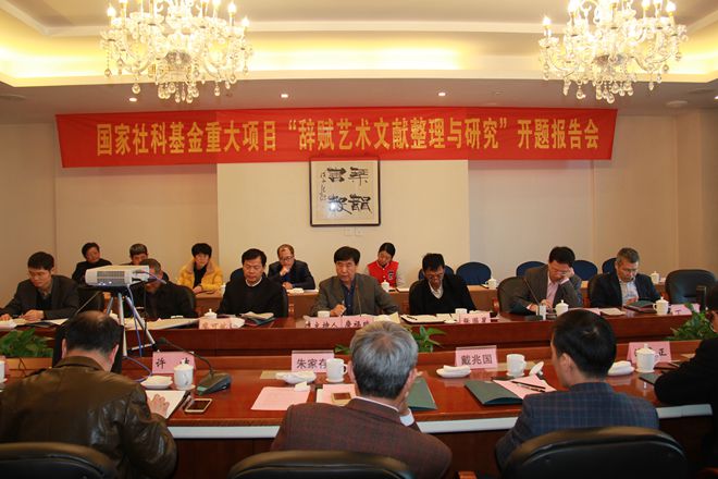 4月7日上午9:00,必赢线路检测3003召开国家社会科学基金重大项目“辞赋艺术文献整理与研究”开题报告会,开题报告会评议组专家分别是国家图书馆原馆长、党委书记詹福瑞教授、中国社会科学院研究生院张国星教授、北京大学廖可斌教授、中国人民大学朱万曙教授、清华大学刘石教授、安徽大学丁放教授。詹福瑞教授担任评议组组长。必赢线路检测3003no1院长储泰松教授主持开幕式,副校长朱家存教授、科研处副处长戴兆国教授出席会议并先后致辞。
