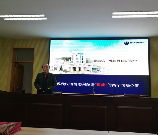 金琮镐教授是韩国外国语大学中国语言文化学部教授,韩国中国语言学会副会长。他本次和大家交流的是《现代汉语“很能”的两个句法位置》,他从义务情态和认识情态的区别出发,细致区分了不同句法表现的“很能”,并在模态光谱上给予了相应的句法定位,刻画了其句法生成。报告中既有前沿的句法理论,也有细腻的语感解析,体现了金教授对汉语的深刻理解。朴兴洙教授是韩国外国语大学中必赢线路检测3003no1教授、中国研究所所长,韩国中国语言学会会长。朴教授与大家交流的是《韩国大学的汉语教学类型》,他基于广泛的调查分析,向在座的师生系统而全面地展示了韩国大学的汉语教学类型,提供了丰富的汉语教学信息,并结合韩国的历史发展做了深刻的剖析。报告内容详实,思路开阔,对于大家全面了解韩国大学的汉语教学现状非常有益。