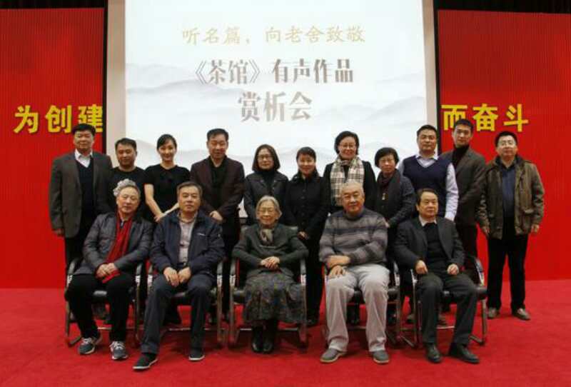 201822上午,值老舍119周年诞辰纪念日前夕,由中国出版集团主办,中版集团数字传媒有限公司承办,人民文学出版社、中国老舍研究会、老舍纪念馆协办的“听名篇·向老舍致敬——《茶馆》有声作品赏析会”在北京中国出版集团举行。