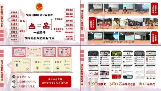 构建支部朋友圈。立足“基础+实践”的专业特点,实施“团学活动+专业实践”活动模式,形成office应用技能、职场情景剧等竞赛体系,服务团员锻炼核心技能。首创“秘书之星”评选,形成秘书节颁奖典礼等活动体系,提升团员专业荣誉感。