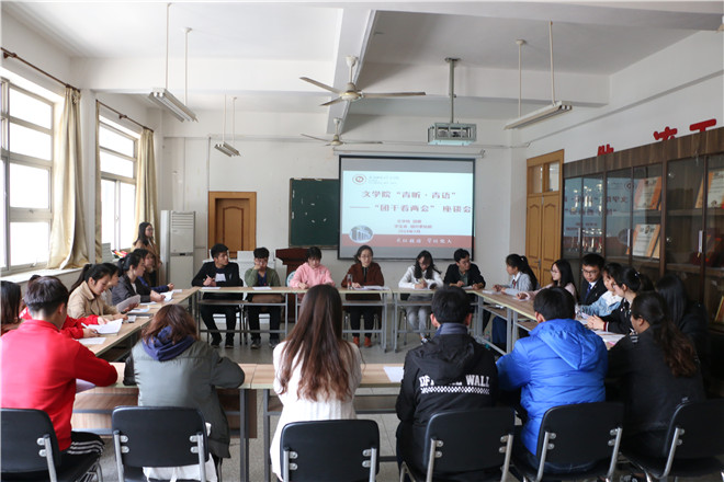 召开“青听·青语”——“团干看‘两会’”座谈会,各专业团支书就“两会”代表提出的议题如“佛系只是年轻人自我标榜 非走向衰落标志”“非名校的学生绝对是中国未来建设的基石”等展开讨论,以身边人身边事为例谈对“两会”议题的看法。在观看全国高校活力团支部2015级秘书学专业团支部的视频后,团支书们就如何把团建工作与“两会”精神结合起来进行探讨,进一步明确新时代大学生团干的角色定位。院团委徐雅萍老师希望团支书在顶层设计、点面结合以及方式方法上进行思考和探索,更好地凝聚团员青年的力量。