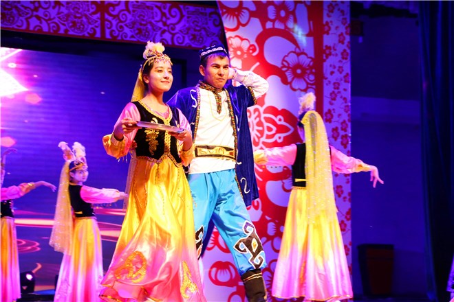 歌伴舞《欢乐中国年》喜庆欢快,载歌载舞,营造出欢乐祥和的气氛,充满着浓浓的年味;《天山舞韵》展现西域风情,舞姿开朗大方,粗犷矫健,来自新疆的巴郎和古丽们还为在场观众带来了新疆美食,令在场观众惊喜不已;昆曲《牡丹亭》以优美的唱腔带领同学们领略传统文化的独特魅力;诗歌朗诵《一个世界的距离》用缓缓的语调述说着中国与世界的交融,品味伟大祖国的日新月异,感受不同国家的开放包容。欢声笑语,欢歌悦舞,让人在严寒冬日感受到浓浓暖意,开启对新年的期待。