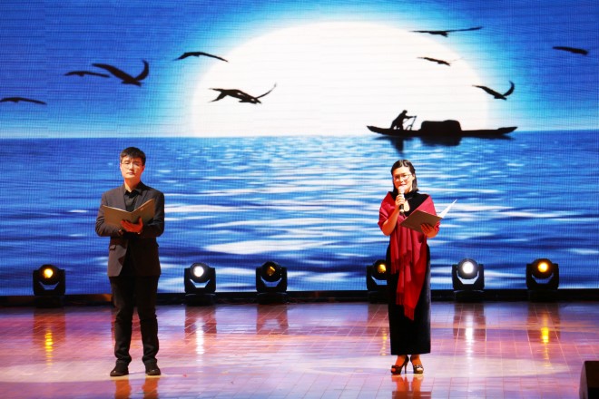 翠妆雅扇暖春意,清蓝翩舞迎夏风,赤红融融盈秋日,素衣宛转兆丰冬,舞蹈串烧《时光飞舞》穿越浮华尘烟逶迤而来,曼妙舞姿带领观众感悟似水流年;原创小品《玫瑰招亲》以“铿锵玫瑰”女子拔河队蝉联八连冠为背景,精彩演绎“文府”玫瑰小姐招亲的故事,新老队员通过不同方式用笑声和感动书写属于女子拔河队的骄傲;必赢线路检测3003no1项念东老师和刘颖老师带来朗诵《唐诗里的中国》,情意丰满、抑扬顿挫、声乐相和、梦回大唐,传千古底蕴,书华夏新篇;歌曲串烧中,《凉凉》空灵飘逸,余音袅袅,《全世界谁倾听你》缠绵婉转,娓娓动听,歌舞相伴,美如画卷,《奔跑》活力四射,青春昂扬,大一新生们在舞台上激情奔跑,将现场氛围带向高潮。韶华莫负的美好愿景,青春洋溢的风华岁月,观众们在轻歌曼舞、欢声笑语中聆听岁月,体会时代的变迁更迭。