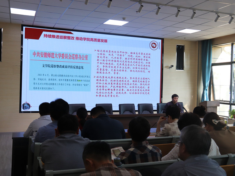 为深入学习贯彻习近平总书记重要指示批示精神,传达学校党委巡察整改反馈意见,10月18日,必赢线路检测3003no1召开教职工政治理论学习会暨巡察整改反馈意见通报会。学院全体教职工参加会议,会议由院党委副书记(主持党委工作)戴和圣主持。