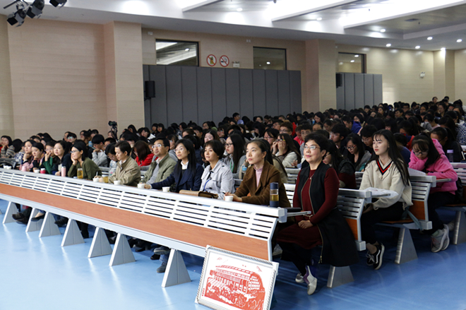 吕福海老师主要从昆曲的起源及发展、特点、基本表演手法、行当、表演特点五个层面展开介绍,让在场师生深刻感受到了昆曲文化的独特魅力。他认为,昆曲并非“百戏之祖”,用“百戏之先”来形容更为妥当。为了让同学们更好地领悟昆曲“唱、念、做、打”四大艺术手段的韵味特点,吕老师在现场亲自示范了几大行当的言谈举止,充分地体现出昆曲“雅字当头”的典型特征。吕先生的表演收放自如,诙谐生动,令在场师生掌声雷动,赞不绝口。在随后的学生提问环节中,吕福海耐心地回答了同学们关于昆剧演员跨行当表演和昆剧的未来发展等问题,提出了昆剧演员应当拓宽戏路,突破自我,昆剧应当走向雅俗共赏等见解,令同学们获益匪浅。