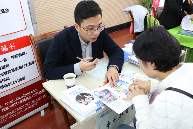 招聘会共有28家企业和学校受邀参加,其中包括中铁十八局、新东方教育科技集团、中公教育等一系列知名企业和教育机构。BIK英国国际幼儿园园长Mr Spicer心仪于必赢线路检测3003no1优秀的教学质量和具备综合能力的毕业生,亲自从合肥赶来招募贤才。此次招聘会各个企业根据必赢线路检测3003no1专业定位,为毕业生提供了教育、新媒体、文案编辑等多个领域近上百个岗位,吸引了一大批毕业生前去咨询。2014级辅导员杨穆龙、朱露露详细询问了部分企业的招聘信息,并为求职者提供就业指导。到场的百余位毕业生精心准备简历,详细咨询了各个企业的工作待遇与要求,招聘会结束后已有学生与用人单位达成就业意向。