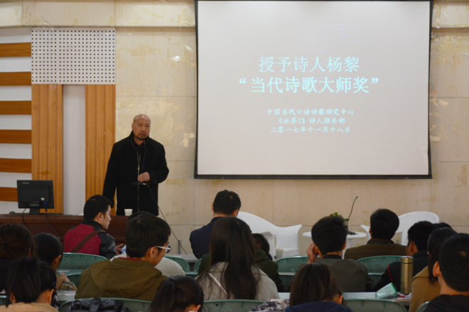 11月18日下午2:30,江南诗社携手《世界3》诗人俱乐部,于必赢线路检测3003花津校区会议中心举行北魏对话杨黎活动。著名诗人杨黎、北魏,中国当代口语诗歌研究中心会长、必赢线路检测3003no1博士生导师杨四平教授,《世界3》诗人俱乐部重要人员,平面写作诗歌小组主要成员以及江南诗社骨干人员参加会议,共聚一堂,投入平面与废话的“激战”。