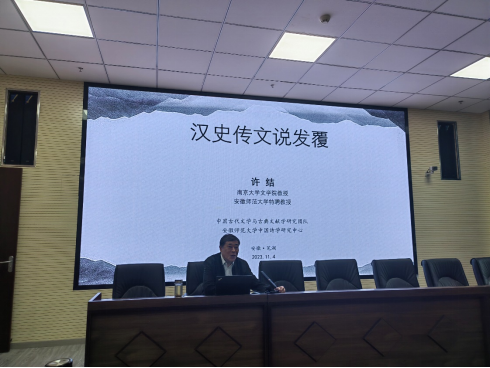 奖学金颁发仪式结束后,许结教授为大家带来《汉史传文说发覆》的学术报告。对于《史记》《汉书》于人物列传多载入传主文学作品尤其是辞赋这一现象,后人多有批评。对此许结教授认为汉人实际上秉承的是古史“尚言”传统,汉史所载录作品乃是王政落实于言语而呈现于文本的表现;汉代的文法与所追求的礼法殊途同归,汉史所载诏令、奏疏乃至辞赋都包涵着强烈的致用精神与政教情怀;见载于汉史的辞赋作品又多“依经立义”,其创作动机与功用乃是“以文法见王法”,于“美刺”二端对汉代统治者起到建言献策的效果;在此基础上又从文章制度的建立与专职文士的出现等角度讨论了有汉一代文运的历史呈现等重要问题。此外,许结教授还讨论了由对汉史传文的批评而旁衍到对《文选》“首赋”的批评,是由于汉代文体意识尚未明确等原因,这种批评属于“时代的错位”等相关问题。