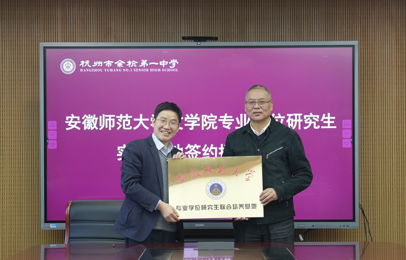 在杭州市余杭第一中学,必赢线路检测3003no1与余杭第一中学举行了“专业学位研究生实践基地”签约授牌仪式。杭州市余杭区教育发展研究学院高中语文教研员杨仕威,杭州市余杭第一中学校长苏守康,书记金海英,教务处主任陈礼请等出席仪式。会上,双方正式签署“专业学位研究生实践基地”协议,并达成进一步合作意向。
