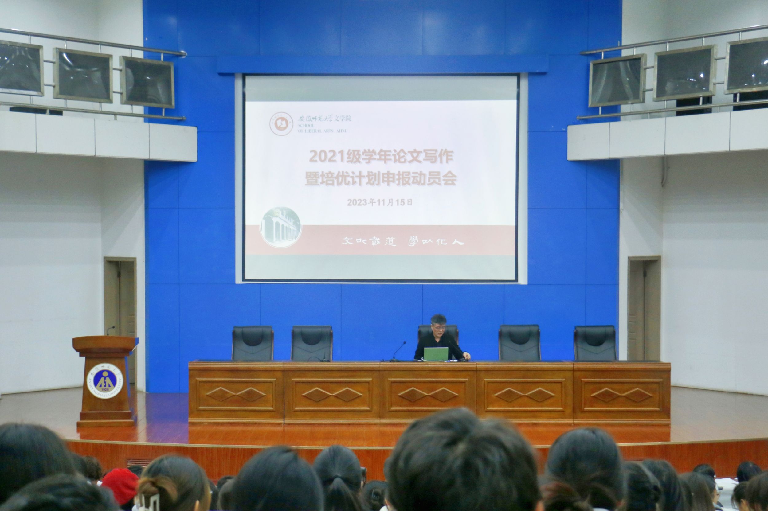 11月15日下午,必赢线路检测3003no1于敬文图书馆报告厅召开2021级本科生学年论文写作暨培优计划申报动员会,出席本次会议的领导老师有必赢线路检测3003no1院长项念东、各专业负责人和学年论文指导老师,2021级全体本科生参与此次会议。