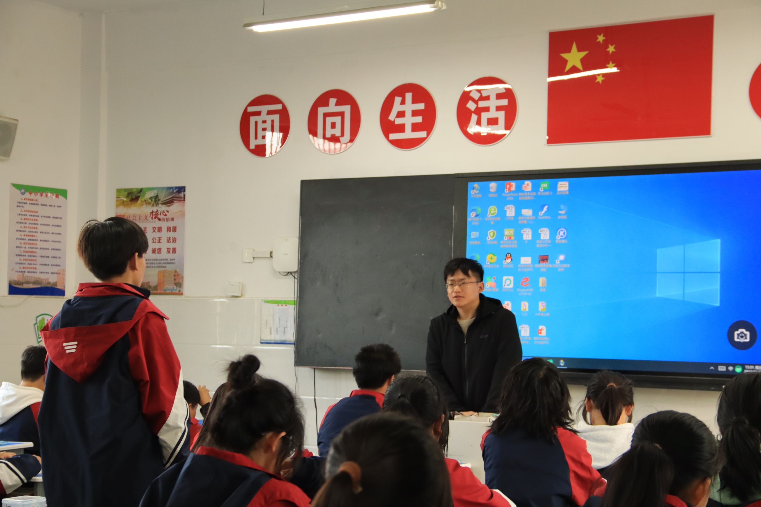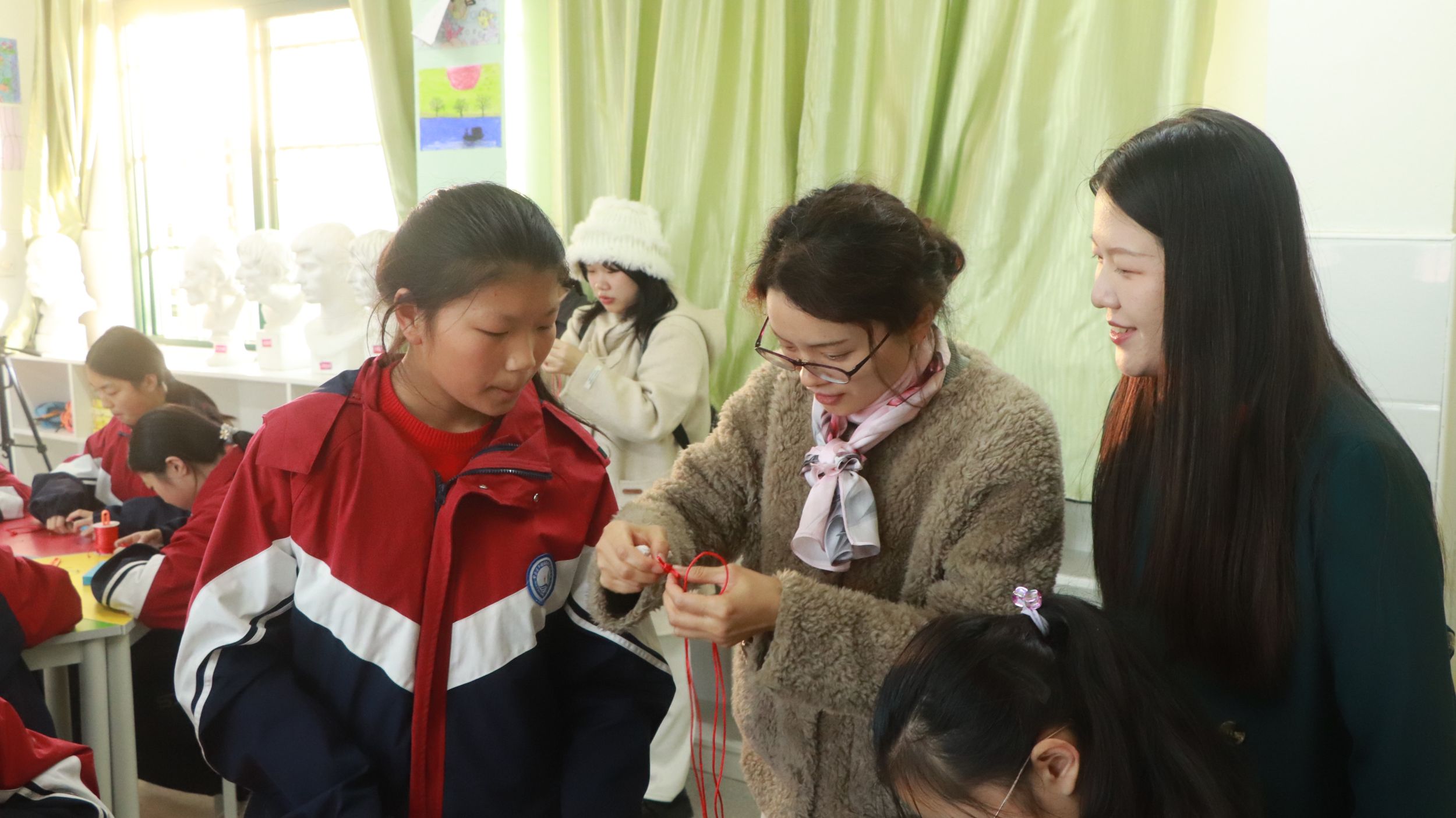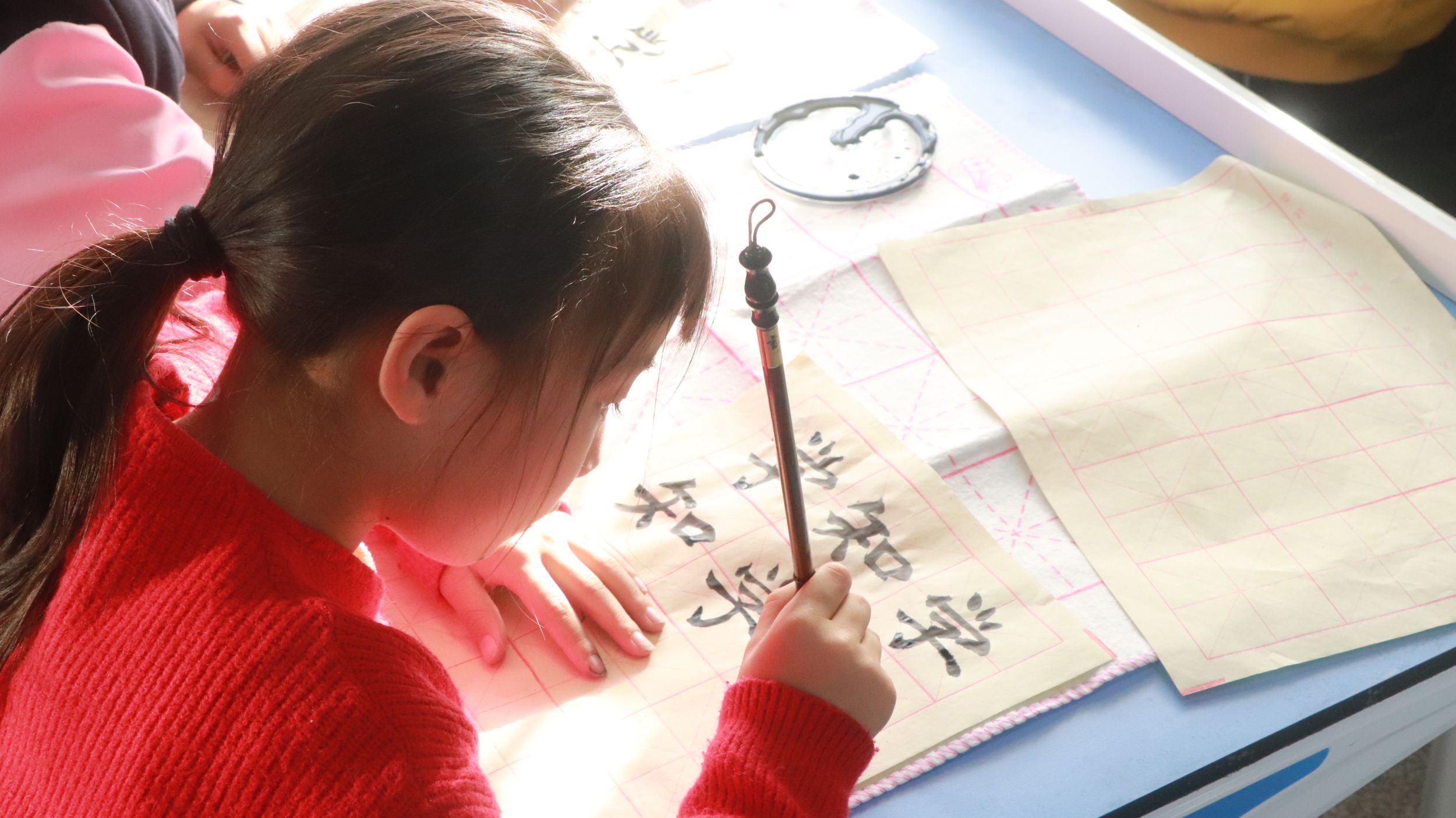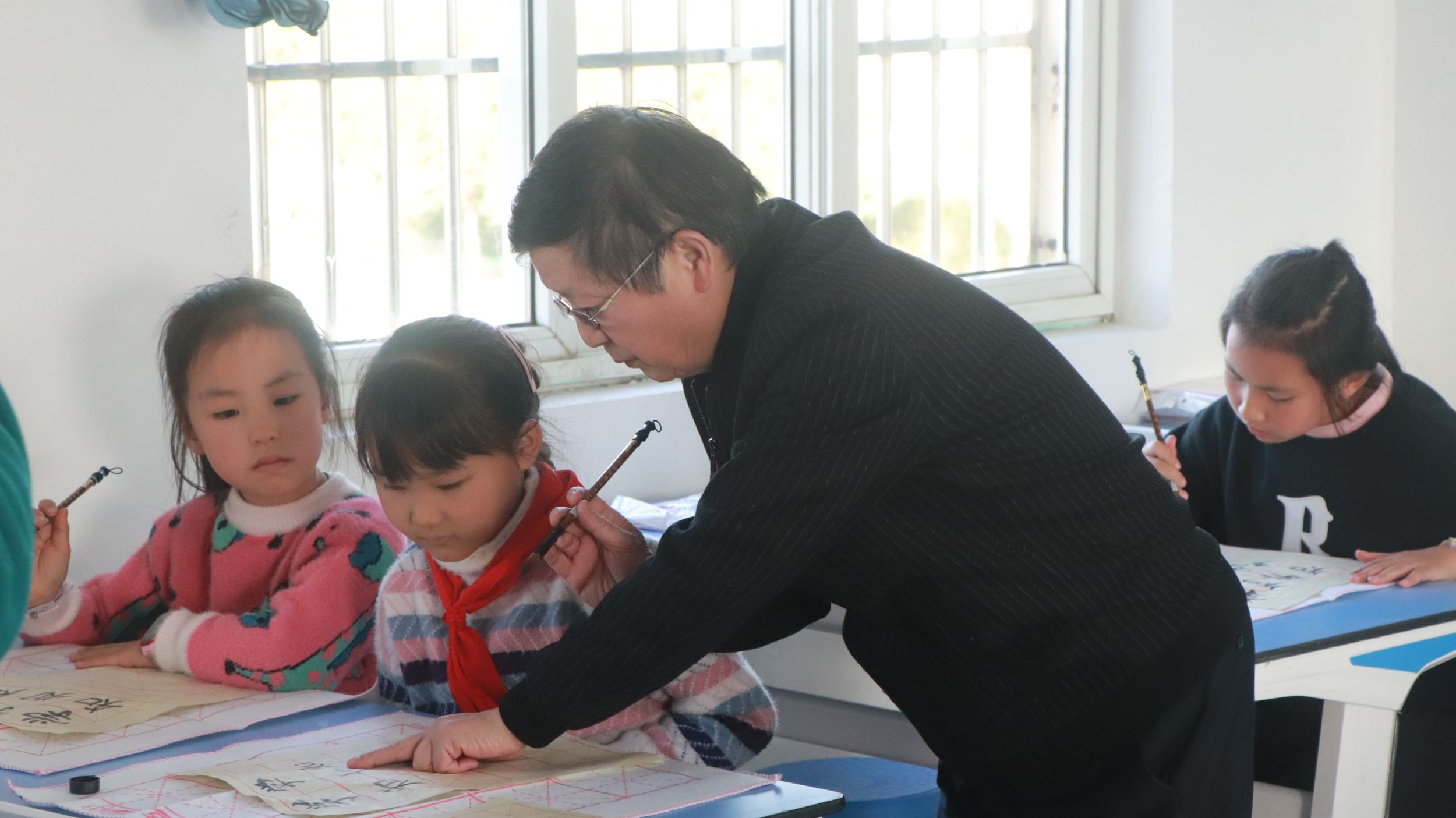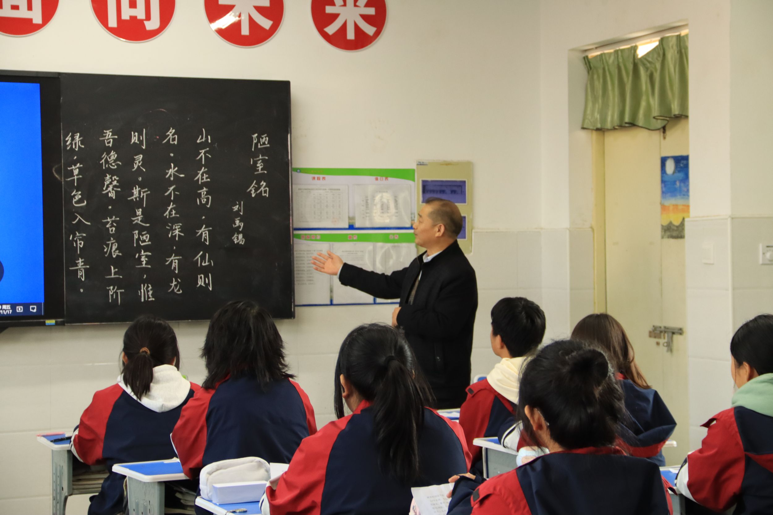 志愿者团队还为学生们精心设计了书法、朗诵、吟诵及传统经典等丰富多彩的课后服务课程。詹绪左教授前往学生书法社团进行了专项指导,以“学”“知”两个字为例,从握笔姿势、用笔力度、字形框架等方面指导学生规范写字,成功激发了学生对汉字的探索兴趣。志愿者梁驭鲸、郑璇以课文《陋室铭》为例对八年级学生进行朗诵指导,崔达送教授也到场进行了现场展示,学生纷纷拍手称赞。在活动过程中学生们不仅学习到了朗诵的技巧,更进一步体会到了作者的情感,明晰了中华优秀传统文化的内涵。