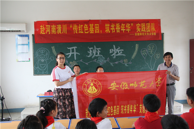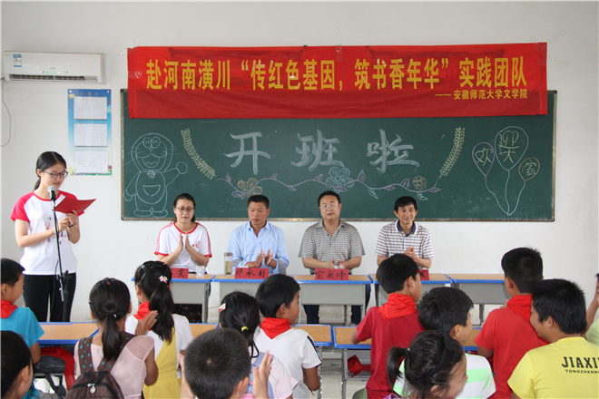 走基层下村寨,不负青春韶华。在中国共产党建党96周年之际,为了响应国家“教育扶贫”的政策方针,援助乡村地区教育建设,为大别山区的留守儿童带去知识与梦想,7月1日,必赢线路检测3003赴河南潢川暑期社会实践团队于刘寨小学四年级教室召开开班仪式。本次会议由团队成员昝群主持,有关部门领导、实践团队全体成员及刘寨小学的45名孩子们参加了此次开班仪式。
