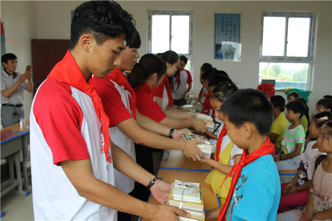 到了图书捐赠的环节,孩子们都伸长了小脑袋,想要看清楚那花花绿绿的封面上都印了什么字。当孩子们捧着书,咧着嘴笑出声来的时候,我们感到一切的付出都有了意义。守护孩子们纯真的笑容,是志愿者们的初心;为他们传授更多知识,是志愿者们的目标;让孩子们了解更广阔的世界,树立理想信念,是志愿者们的追求。孩子们给予志愿者的真心,一定会得到同样真诚的回报。