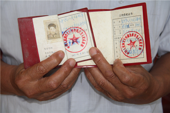 38年过去了,在一群小辈面前,杨得胜讲起当年的战争,精细而无漏,但这云淡风轻的叙述还是掩盖不了他的眼中的泪光。“最紧张的时刻?我只剩三发子弹,一时半会儿也下不了火线,我没得选啊,就往前冲,往前跑,一点不得犹豫!”当志愿者问及在一个月的枪林弹雨中,哪一刻老人最紧张的时候,老人的情绪瞬间高涨。“我们孤军作战,没得后援部队,最长三天三夜都不睡觉,身上背着40公斤的子弹、手榴弹、干粮,太重啊,那东西太重,最后都一件一件扔掉,我们连里18岁以下的小兵都能活活累死……”