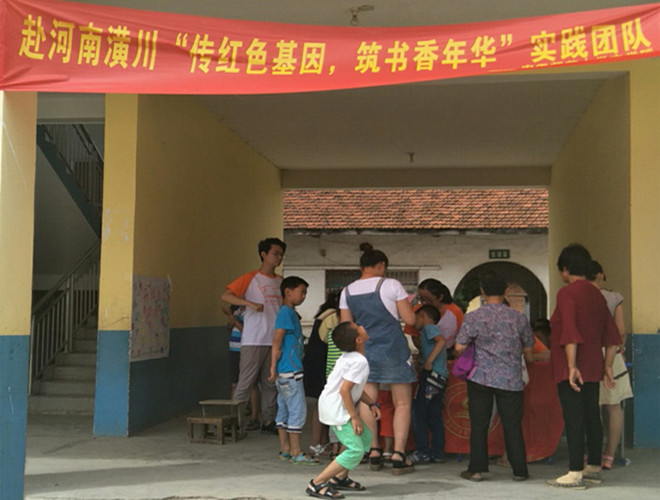 当看到一个小男孩抬着头望着队员们刚刚挂好的横幅时,团队的一个男生立即走上前对他说,“来,站在我的肩膀上,这样你就能看清楚了。”小男孩还没等他说完就羞涩地跑了。也许对于那个孩子来说,志愿者们是一群远道而来的客人,来教他们读书。至于志愿者们来自哪里,那个地名是陌生的,陌生到无法踏足。