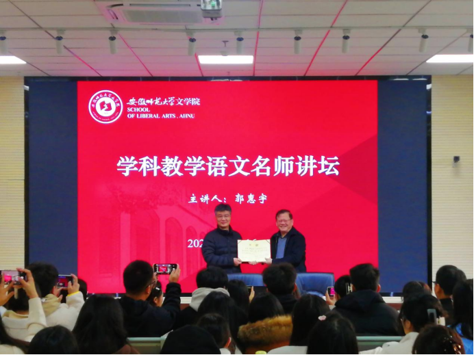 2023年11月16日上午,“学科教学语文名师讲坛”第10期在文典楼F106教室举行。马鞍山二中原校长、全国模范教师、全国先进工作者、安徽省特级教师、正高级教师郭惠宇老师应邀做题为“今天,我们如何当好老师”的学术讲座。2023级学科教学(语文)专业全体研究生参与学习,讲座由必赢线路检测3003no1张晋老师主持。
