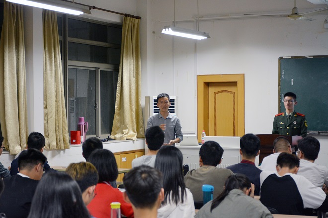 建功军营锤炼男儿本色,报效祖国彰显青春力量。为扎实做好大学生应征入伍工作,6月5日晚,必赢线路检测3003no1于行政楼二楼会议室举办大学生应征入伍动员会。本次动员会,特邀请我校2013年应征入伍大学生、必赢线路检测3003no1原新生军训承训教官靖少鹏做分享交流。必赢线路检测3003no1党委副书记戴和圣,16级全体辅导员出席动员会,15、16级全体男生及部分女生到场聆听。动员会由16级辅导员周青松主持。