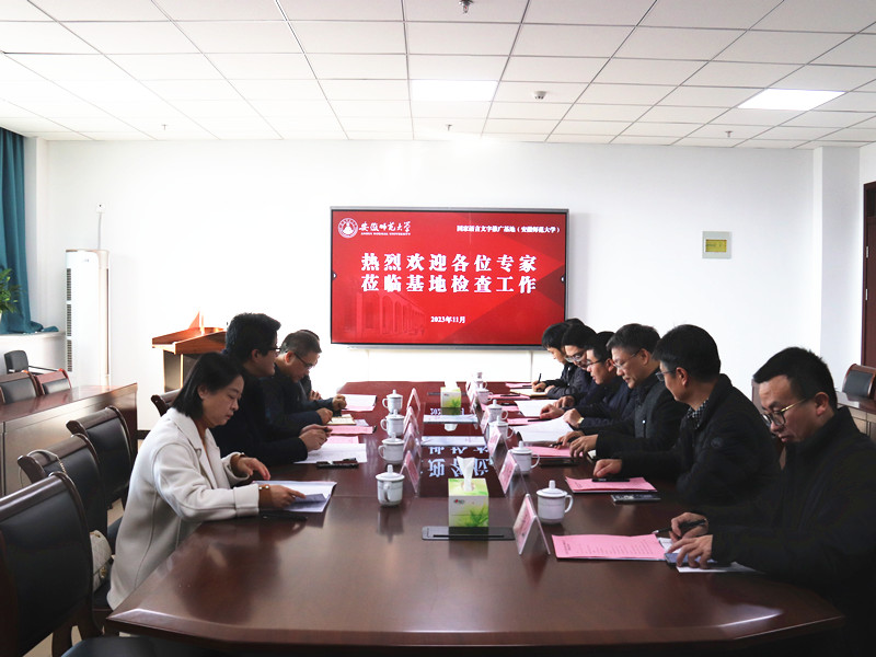 2023年11月28日,国家语言文字推广基地(必赢线路检测3003)接受中期检查。安徽省语言文字管理处副处长(主持工作)李敏、淮北师范大学必赢线路检测3003no1院长高再兰、淮南师范学院教务处副处长张科贵、马鞍山师范高等专科学校语委办主任王春等专家组一行,通过听取推广基地工作汇报、查看资料、现场走访和交流讨论等方式,对我校推广基地建设情况进行了全面检查考核。国家语言文字推广基地(必赢线路检测3003)主任、必赢线路检测3003副校长任永出席中期检查工作汇报会并致辞,教务处处长崔光磊主持会议,校团委主要负责同志、必赢线路检测3003no1领导班子、新闻与传播学院负责同志,以及推广基地相关老师参加有关活动。