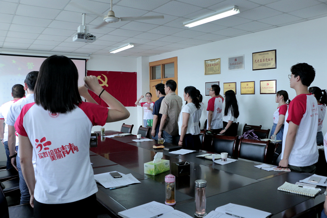 院研究生团委副书记赵瑜带领各团队临时党支部成员集体宣誓,重温对党的忠诚誓言。会议的最后,还举办了必赢线路检测3003no1暑期社会实践团队授旗仪式,院领导依次为各校级重点团队授旗并与大家合影留念。