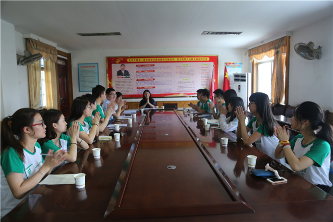 团队紧跟时代背景,结合习近平总书记针对扶贫工作的重点强调——脱贫攻坚战冲锋号已经吹响,贫困地区迈入全面小康需要找对路子,更需要坚持“培养贫困地区孩子”的根本策略,将“三扶贫”融入实践,形成了孝行教育与精神扶贫互促的新模式。在欢迎仪式上,王店镇党委副书记王建民,副镇长朱囡囡,团委书记甘齐齐,王店镇中心校校长吕春华等首先对志愿者们的到来表示赞许,然后通过对实践地点基本情况的介绍鼓励志愿者们用孝行传递爱,用善举奉献真,用真心收获美。全体队员怀着坚毅的目光,用真挚的语言抒写青春孝行。“今年是我第二次走入阜阳,身份由队员转换为队长,肩膀上的责任与担子更为重大。希望在这次实践之中,我们能真正用实际行动践行志愿者精神,助力孝行教育与精神扶贫。”队长王恒如是说道。